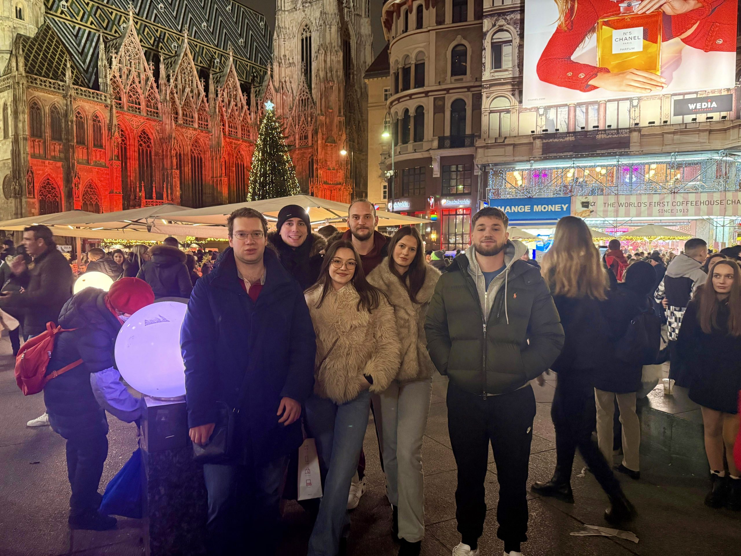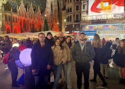 Četrdeset studenata EFFECTUS veleučilišta doživjelo je prošlog vikenda čaroliju adventskog Beča kroz putovanje koje je spojilo upoznavanje grada, kulturna iskustva i ugodno zajedničko druženje. Austrijska prijestolnica dočekala ih je u blagdanskom ruhu, s bogatom poviješću, impozantnom arhitekturom i prepoznatljivom adventskom atmosferom.
