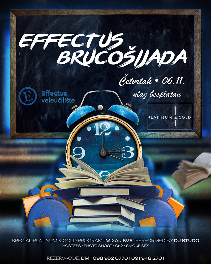 Dragi studenti, pozivamo vas na Brucošijadu EFFECTUS-a, tradicionalni studentski događaj koji obilježava početak akademske godine. Brucošijada je prilika za druženje, upoznavanje novih kolega i zajedničko slavlje uz glazbu i ples.