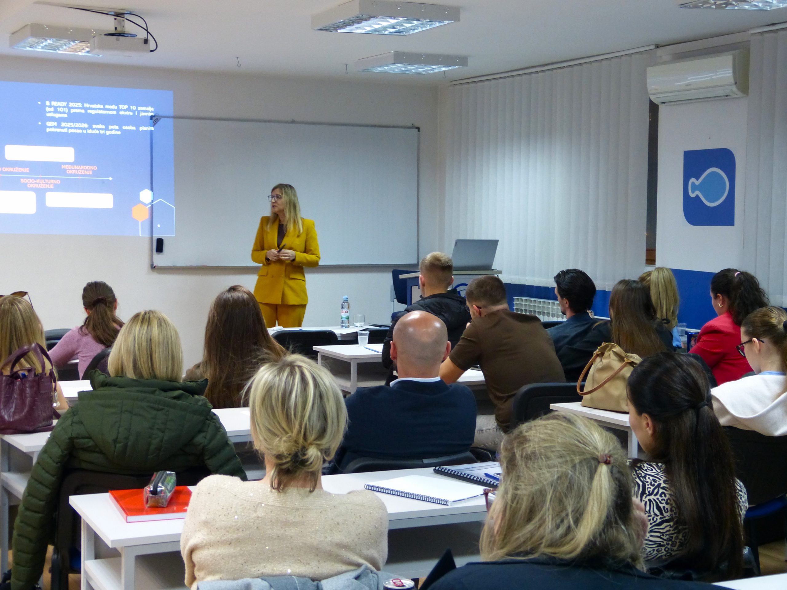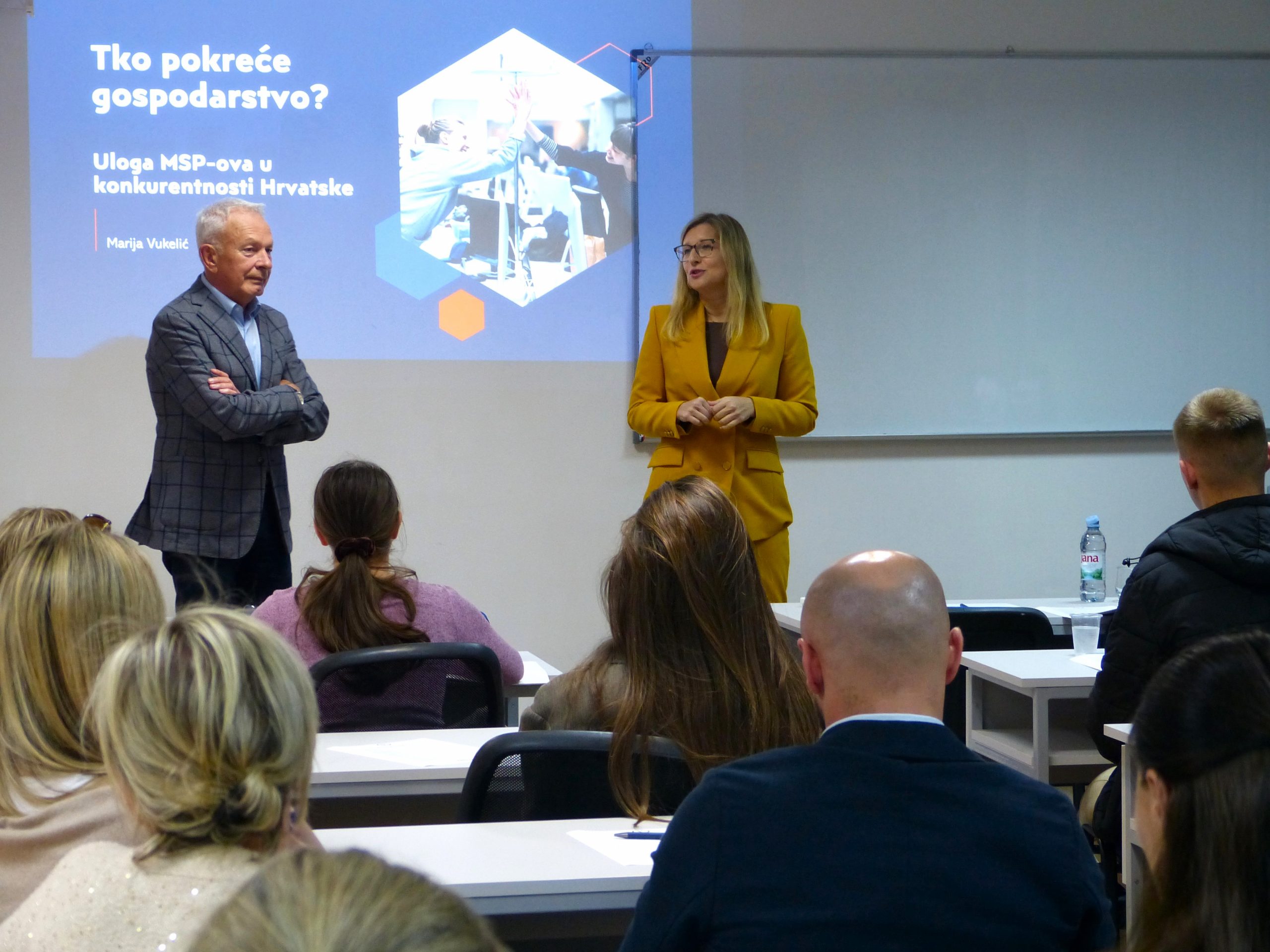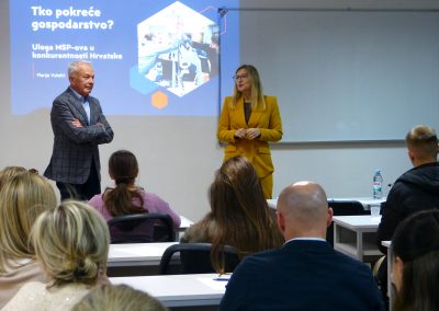 Predavanje je studentima pružilo širi uvid u ekonomski i institucionalni kontekst poduzetništva te pridonijelo boljem razumijevanju uloge zakonodavstva i javnih politika u oblikovanju poticajnog poslovnog okruženja. Kroz konkretne primjere programa podrške poduzetnicima, Marija Vukelić je dodatno potaknula studente na aktivnije povezivanje s institucionalnim sustavom potpore poduzetništvu.