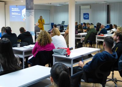 Govoreći o instrumentima javnih politika, Marija Vukelić je predstavila načine na koje država oblikuje poduzetničko okruženje, pri čemu važnu ulogu imaju financijske mjere potpore, ali i nefinancijski instrumenti poput obrazovanja, institucionalne podrške i europskog regulatornog okvira. Studenti su pritom upoznati i s regulatornim okruženjem u kojem djeluju poduzetnici, kao i s administrativnim izazovima s kojima se susreću u svakodnevnom poslovanju.