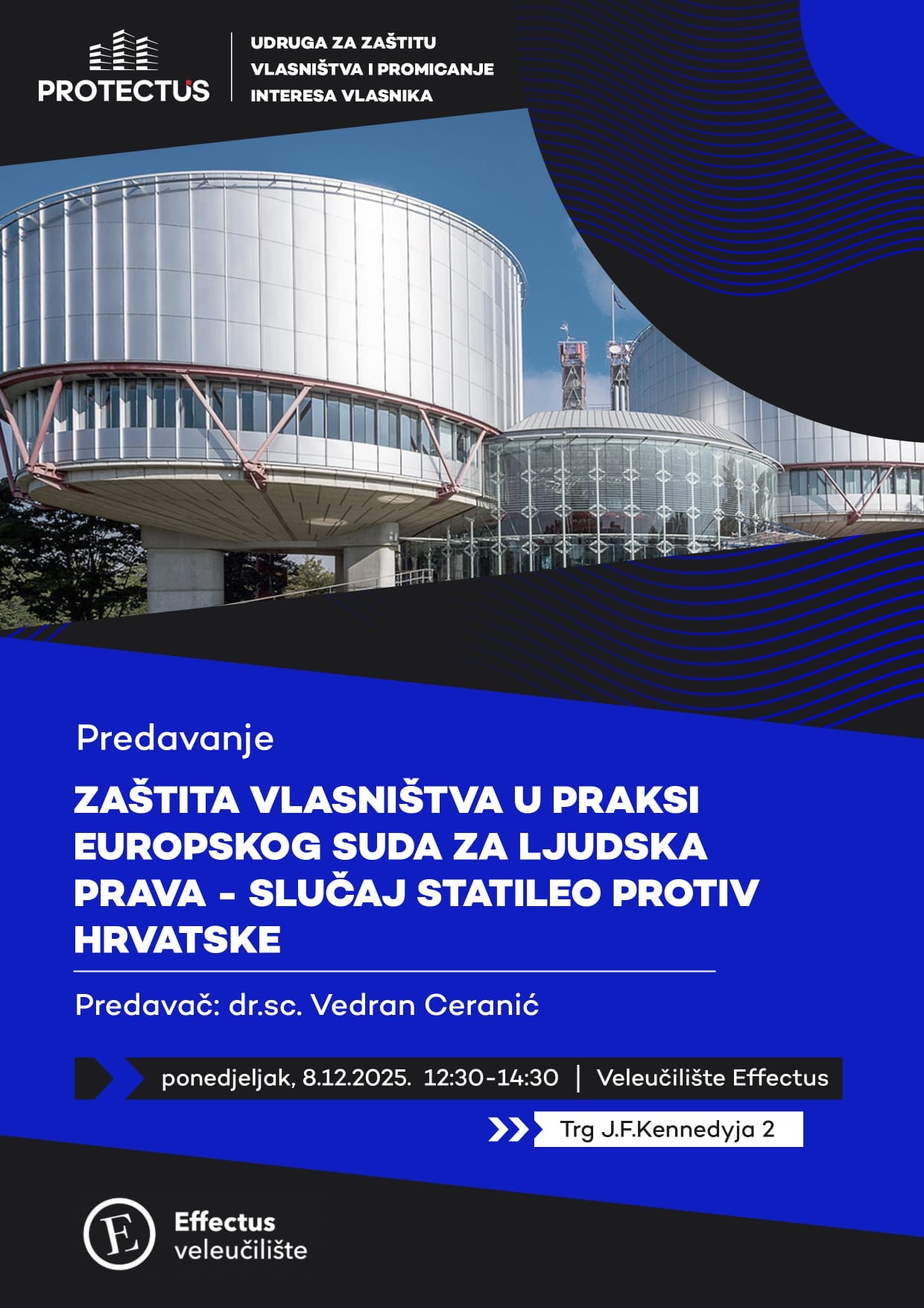 Predavanje: “Zaštita vlasništva u praksi Europskog suda za ljudska prava – slučaj Statelio protiv Hrvatske”